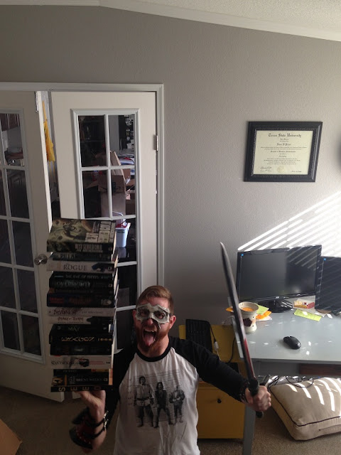 Half A War - Abercrombie, A Clockwork Orange - Burgess, Chronicles of the Black Company - Cook, Forge of Darkness - Erikson, The Princess Bride - Goldman, The Eye of the World - Jordan, Swords of Good Men - Kristjansson, King of Thorns - never heard of the guy (Lawrence), A Storm of Swords - Martin, Blood Song - Ryan, The Icewind Dale Trilogy - Salvatore, The Lord of the Rings - Tolkein